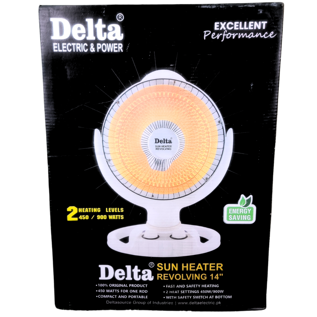 Introducing the Delta Electric Auto Rotating Sun Heater with 2 Heat Settings – your eco-friendly heating solution.